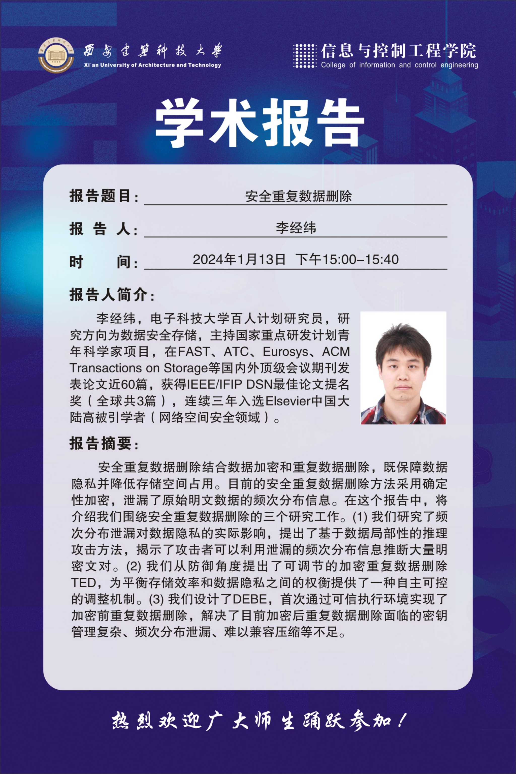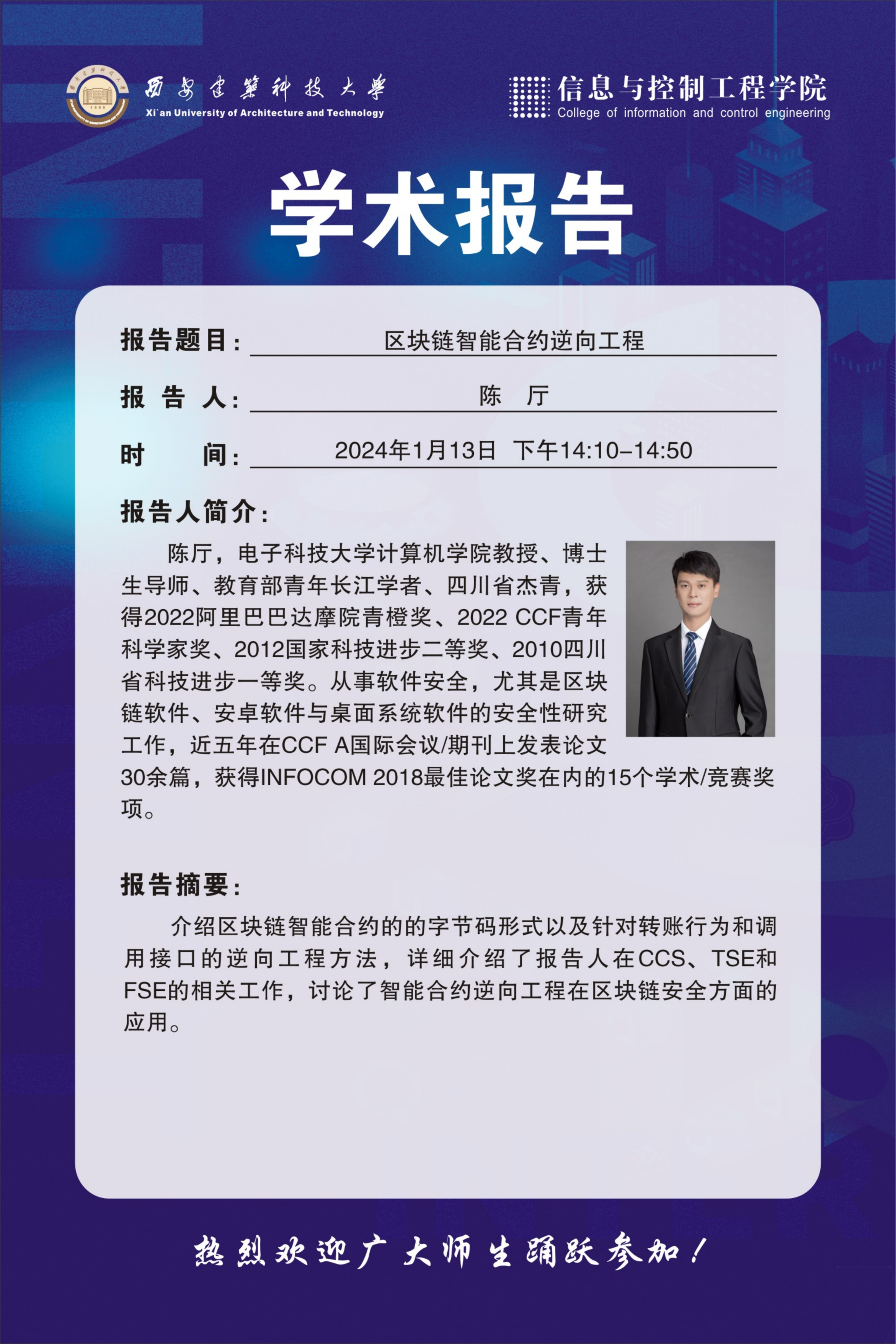 地 点:草堂校区学府城6-301报告厅