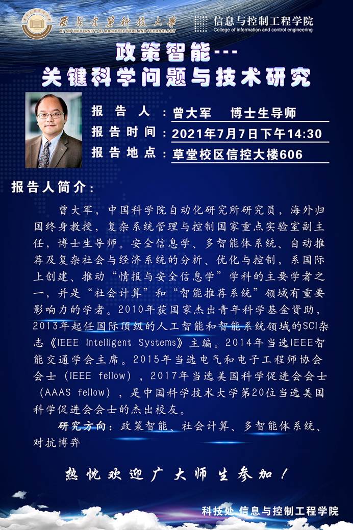 时间:2021年7月7日下午14:30地点:草堂校区信控大楼606