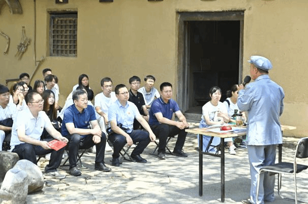 在陈家坡会议旧址,师生党员代表一同在展室、红色教育影厅进行了参观学习,并共同聆听了会议旧址守护人杜天祥老人讲述了习仲勋等老一辈革命家在陕甘边的革命事迹。师生党员从生动、质朴的语言中,深刻感受到习仲勋等革命先辈坚定的共产主义信念、不屈不挠的斗争精神和为人民谋幸福的初心使命。