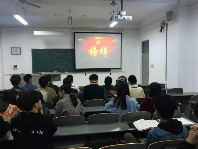 他们的事迹使党支部每位成员内心深深触动,屏幕中优秀共产党员重温入党誓词的同时,每一位党支部成员也承诺要发挥先锋模范作用,思想上严格要求自己,学习上认真刻苦,工作上积极负责,生活上乐于助人,不忘初心,牢记使命,争做祖国栋梁。