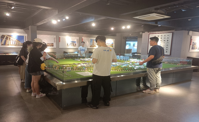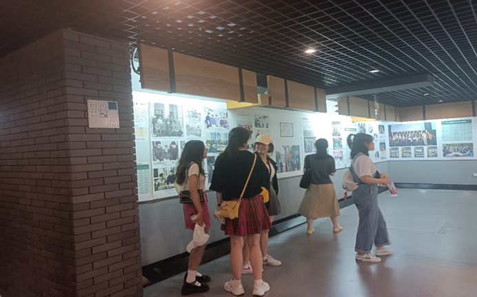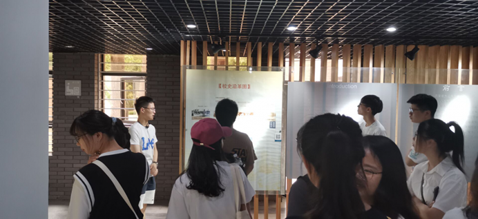 首先全体学生在学生向导的带领下参观了校史馆。馆内的第一层,作为整个校史馆的序言厅,主要展览内容为学校发展沿革图和历任主要领导一览表,以及一座校园本部的水晶微缩模型。