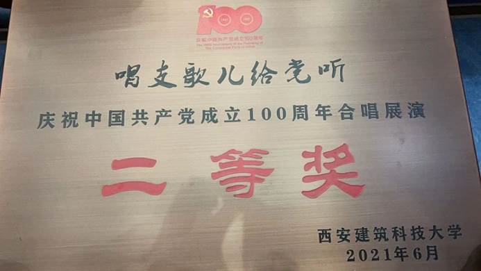 庆祝中国共产党成立100周年合唱展演”中合唱《在灿烂阳光下》,荣获二等奖。