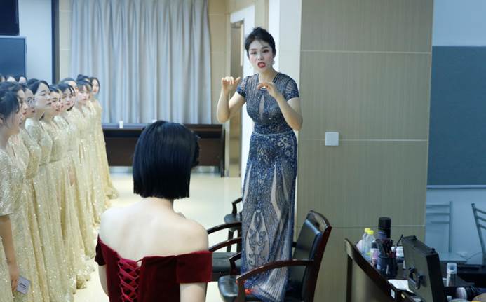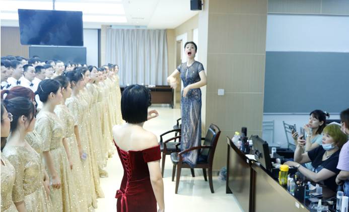 在选曲后,邀请专业老师为大家讲解歌词背后的故事。参与师生在训练过程中,排除万难,利用休息时间进行排练,学院也从各方面为训练师生做好后勤保障。在专业老师的悉心指导下,全体师生的配合下,大家的合唱水准和默契度不断提高,每次训练都朝气蓬勃、 昂扬向上。