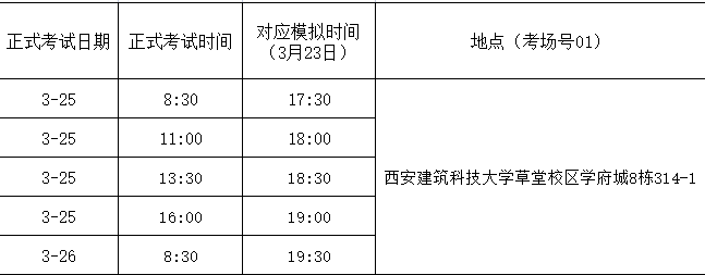 雁塔校区模拟考试具体安排