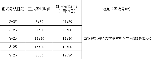 (02考场:学府城8栋314-2)