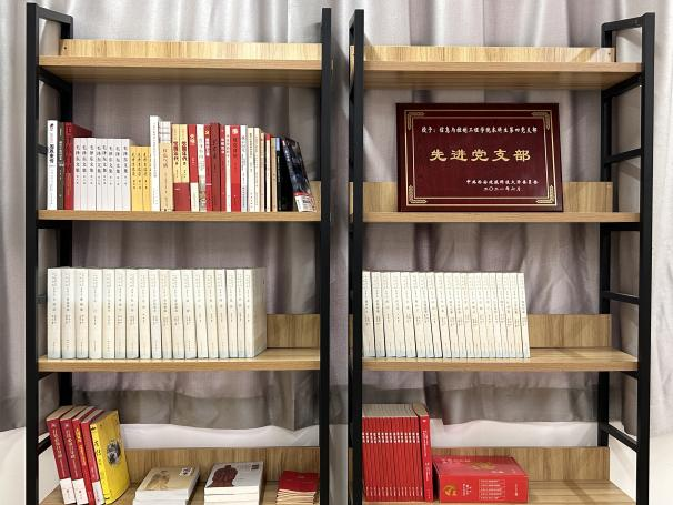 近日,学院于信控楼709挂牌成立“一站式”学生党建服务中心,作为党员理论学习、交流研讨的一个重要阵地,将其打造成为学生党员理论学习、交流研讨、组织生活、民主监督等多种功能为一体的党员活动阵地。“一站式”学生党建服务中心设立“读书角”,通过必读书目+自选书目的方式,全方位丰富学习资源。党员通过阅读红色书籍、研读党史,将理论联系实际付诸于行动,将新思想中蕴含着的丰富思想资源、实践智慧、宝贵经验、精神财富化为青年党员学习的奋斗指标。