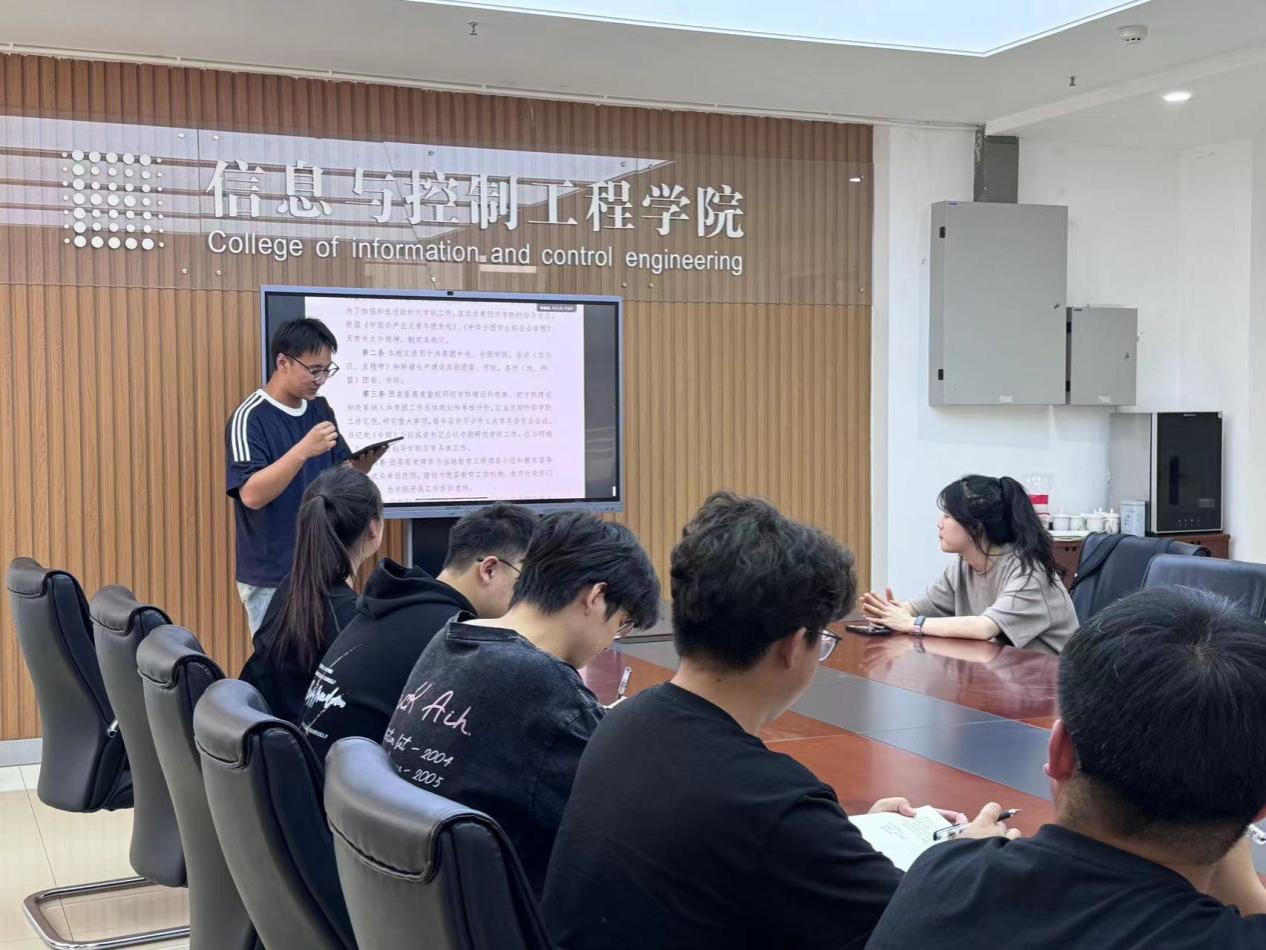 研究生第一、第二党支部在信控楼504开展了2024年度组织生活会。首先支部书记对支部一年来的工作进行总结和分析,并对上一年度支部所存在的问题的整改情况进行汇报。随后,各支部成员逐一进行批评与自我批评,重点剖析了自己在思想、工作及学习等方面存在的不足,发言中,大家紧密联系实际,突出问题导向,达到了统一思想、增进团结、相互监督、共同提高的目的。最后,支部书记号召全体党员做到“吾日三省吾身”,经常性地进行自我剖析,发现自身的优势和不足,补齐短板,进而达到全方位的提升。