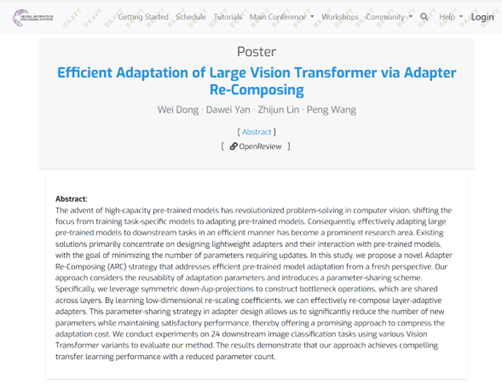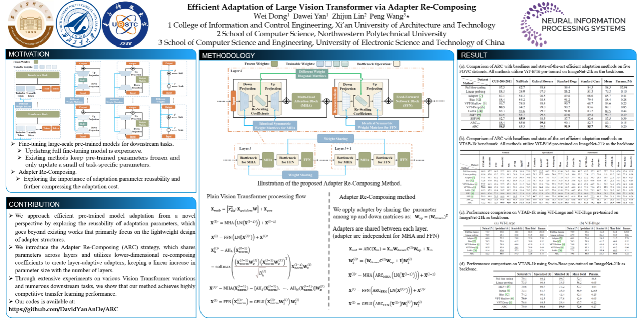 青年教师董玮副教授在国际顶级会议NeurIPS 2023(CCF-A类会议)上发表题为《Efficient Adaptation of Large Vision Transformer via Adapter Re-Composing》的学术研究论文,董玮副教授为该论文的第一作者,酷爱成人网