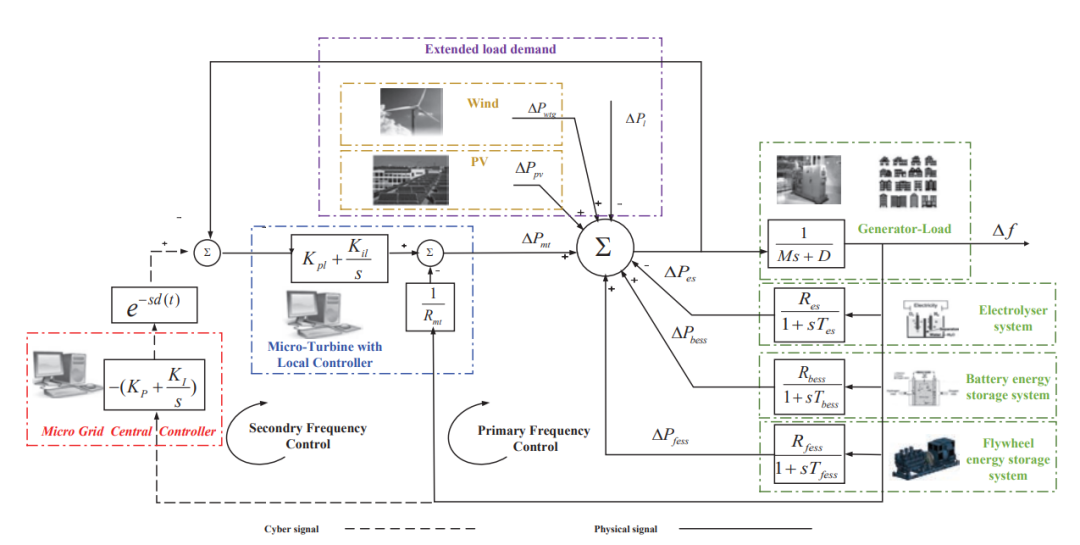 电力系统作为一种代表性的信息物理融合系统,其负荷频率控制问题源于世界科技难点领域,属于国际学术新兴热点研究。微电网系统作为电力系统的重要组成部分,其负荷频率控制信息的交换依靠开放的、低带宽的通信通道网络进行,不可避免地存在固有的时变时滞,影响系统稳定性。对于这类系统的稳定性分析,扩展时滞稳定裕度是必要的,但同样重要的是,计算负担不增加太多且分析判据有很大的自由度,给工程师选择提供灵活性。本研究首先构建了综合考虑混和储能等新能源并网和信息物理集成特性的微电网系统模型,其次创新性地提出了一类可调参数平方依赖的混和凸组合技术,使获得的稳定性判据在不增加过多计算量的前提下保证小保守。虚拟仿真和半实物实时仿真均验证了所提方法的先进性。