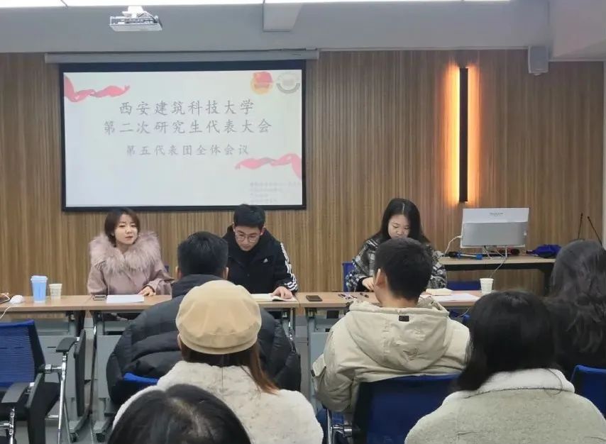 、建科学院、公管学院、艺术学院四个学院研究生代表组成,第五代表团全体代表进行了有关双代会的友好交流。