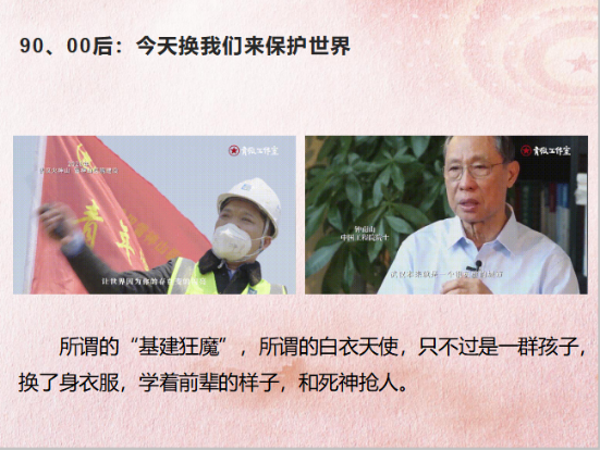 有人说我们是娇滴滴的一代,但现在看来,青年一代已成为了抗击疫情的主力军,他们不怕苦、不怕困难、不怕牺牲!广大青年用实际行动证明:新时代的青年是好样的!是堪当大任的!我们要向青年前辈们学习,艰苦奋斗、不畏险阻、舍小我成大我,努力成为社会主义建设的主力军!