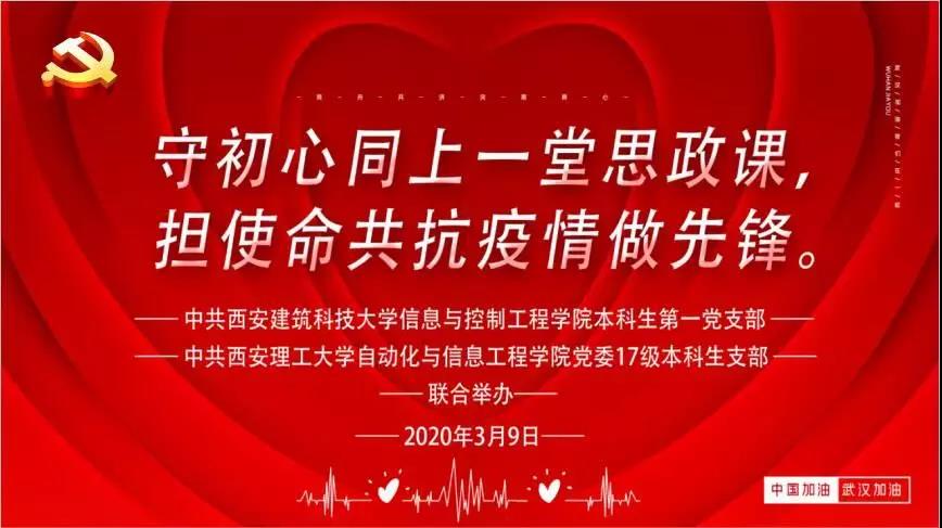 本科生第一党支部与中共西安理工大学自动化与信息工程学院党委17级本科生支部的全体党员、积极分子观看学习了思政课直播。当晚七点,两个基层党组织联合召开“守初心同上一堂思政课,担使命共抗疫情做先锋”的主题视频会议,两校学生党员交流互通,探讨思政大课心得、分享疫情期间作为,同赴使命、共担责任,展现了青年党员开拓进取、爱党爱国的新时代奋斗精神。