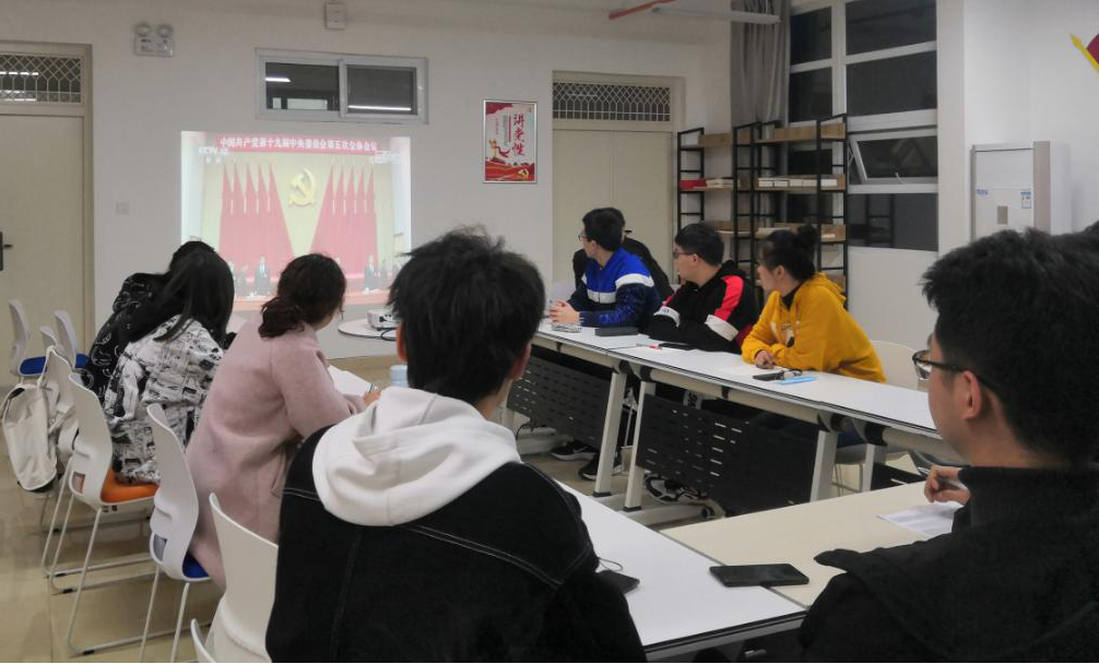 本科生第二党支部在信控大楼党建活动室召开支部大会,集体学习十九届五中全会会议精神。