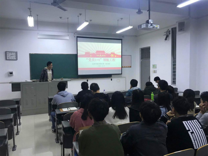 本科生第一党支部在学府城13栋215教室开展“不忘初心、牢记使命”主题教育集体学习,党支部书记张雨明与第一党支部全体成员到场参会。