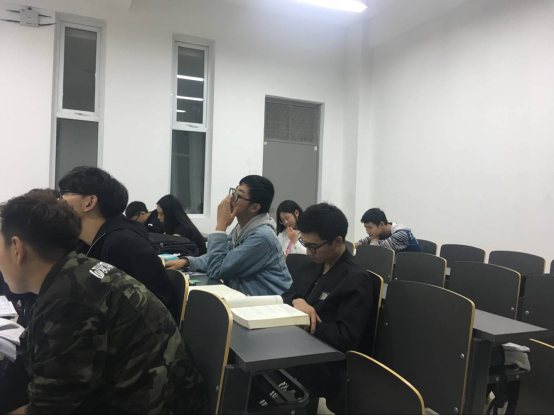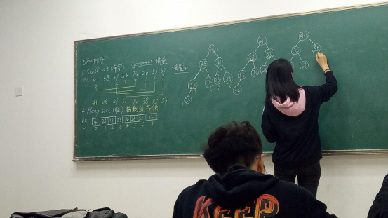 在将考试重点系统归类划分后,刘畅与杨云聪同学对重难点知识分模块进行讲解。首先,刘畅同学对书中的"五类排序算法的思想和排序过程"、"AVL树的画图过程"、"多路树的插入和删除算法"三块知识点进行仔细讲解,并通过具体举例和画图结合的方法让大家对排序过程和算法的思路及方法有了更深入的理解。短暂休息后,杨云聪同学又对包含"图的邻接矩阵"、"最小生成树"、"最短路径"、"拓扑排序的深度优先遍历和广度优先遍历算法"四大知识点的图论进行解析教学。他结合书本例题与自身理解,将抽象的图论知识具体化,详细地为同学们分析了相应的解题方法。同学们仔细听讲,不时记录讲解过程中提及的重要知识点。课堂中学习氛围浓厚,同学响应积极,两位主讲对同学提出的疑问也都做了耐心解答。