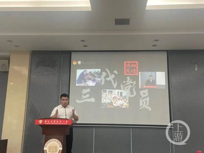 的“百名青年讲百年”活动中,姚昊轩用《三代党员,三个天地》为题,向同学们分享了爷爷、父亲和他自己的入党经过。图片来源/受访者供图