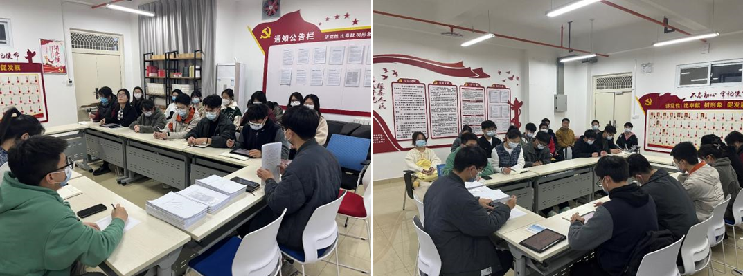 本科生第一党支部在信控楼709开展了2022年度组织生活会。会上,全体党员先集体学习了党的二十大精神和全国两会精神。随后,全体党员联系个人思想、学习、作风实际,逐一作对照检查发言,进行批评与自我批评、主动查摆问题、征求意见反映、明确努力方向和改进措施。最后,全体党员在个人自评和相互评议的基础上,按照实事求是、民主公开、公平公正的原则,开展民主评议党员。在今后的学习生活中,广大党员一定会发挥先锋模范作用,在思想、学习、竞赛、生活等多方面树立典型,成为朋辈学习的榜样,聚焦考研和就业目标并为之努力奋斗。