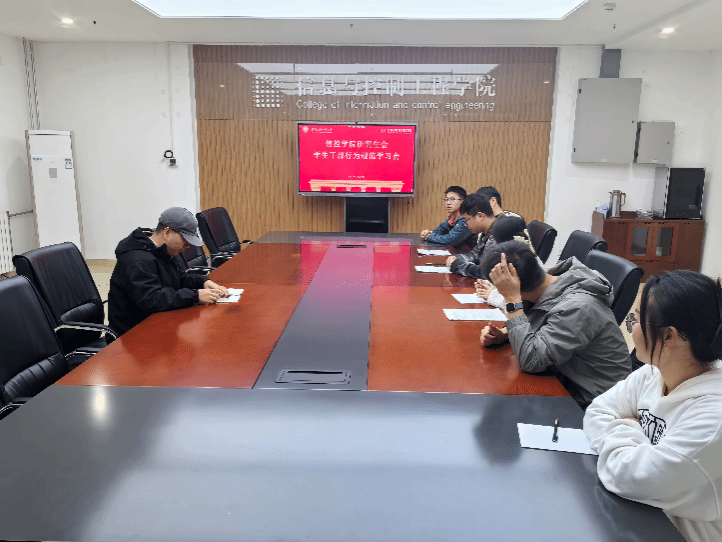 在交流会上,主席团成员闫俊豪带领研究生会成员学习了《酷爱成人网