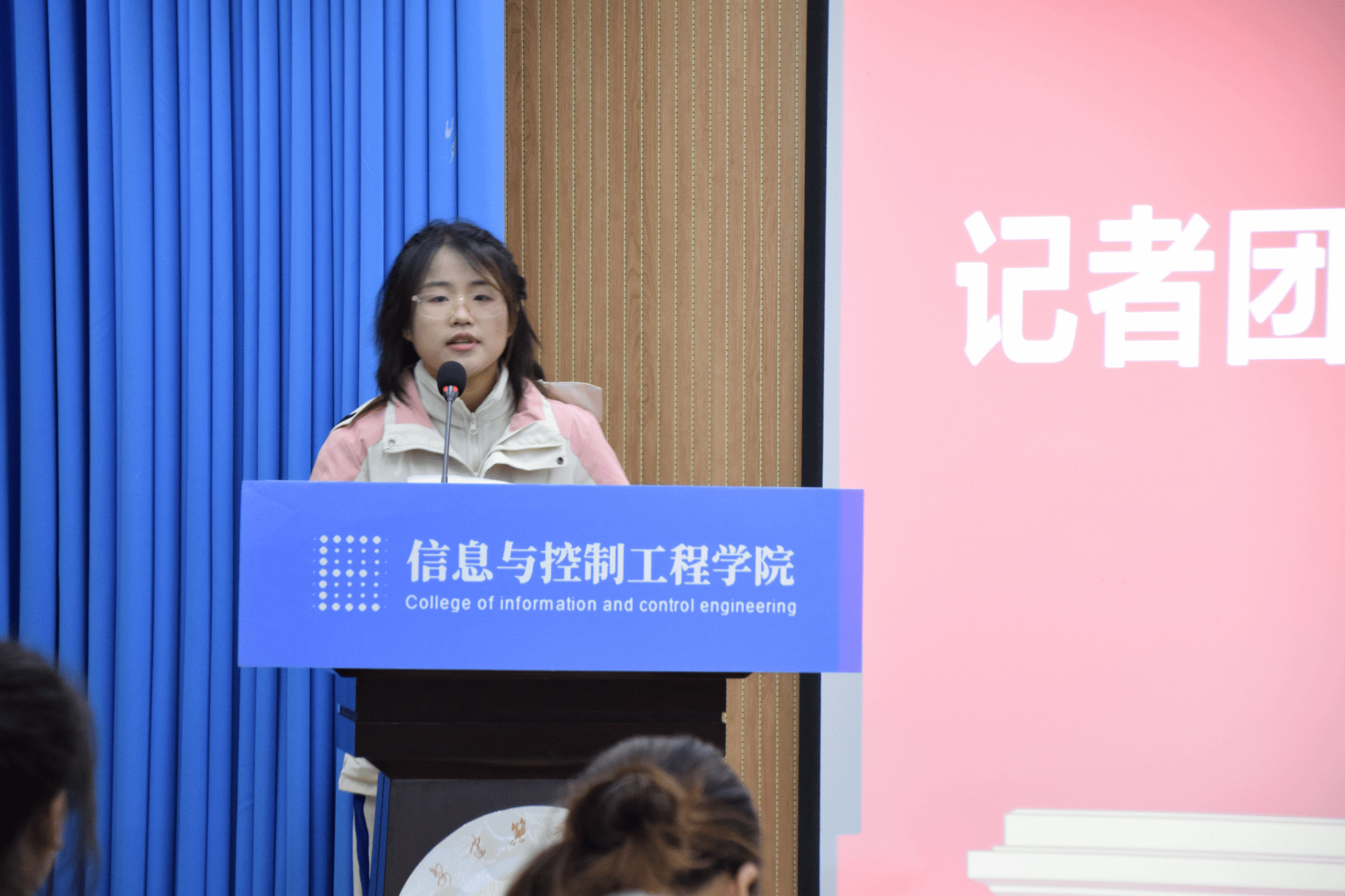 会上,2023-2024学年学院记者团团长付云玥代表上一届记者团从组织概况、工作成果、工作反思做了工作过总结,并分享自己的体会与感悟。她提到自己的大学时光伴随着记者团发展,从懵懂走向成熟。希望记者团能够在新一届的带领下办的越来越好,全体成员能够知不足而改之,不断提高自己的新闻素养,做到记录时代脚步,传递信控声音,书写更辉煌篇章。