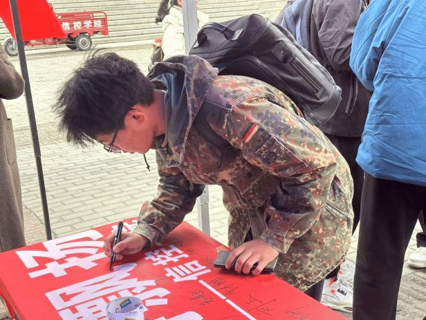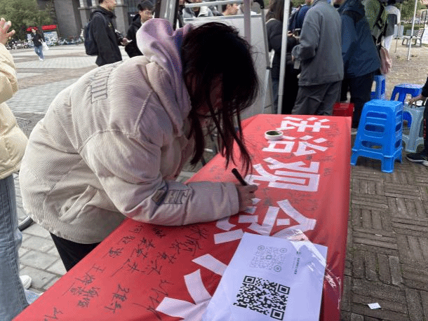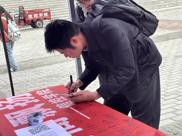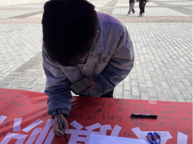 与此同时,一条洋溢着法治理念、承载着学子们庄严承诺的宪法签名横幅格外引人注目。同学们纷纷在横幅上郑重的签下了姓名,留下了自己对法治的承诺。在那一刻,他们深刻地体会到了宪法的崇高与神圣,仿佛与宪法之间建立了一条神秘而庄严的纽带。这份承诺,不仅唤醒了同学们的责任感和使命感,更激励他们在未来的岁月里,坚定不移地捍卫法治的尊严,成为法治精神的传播者和践行者。