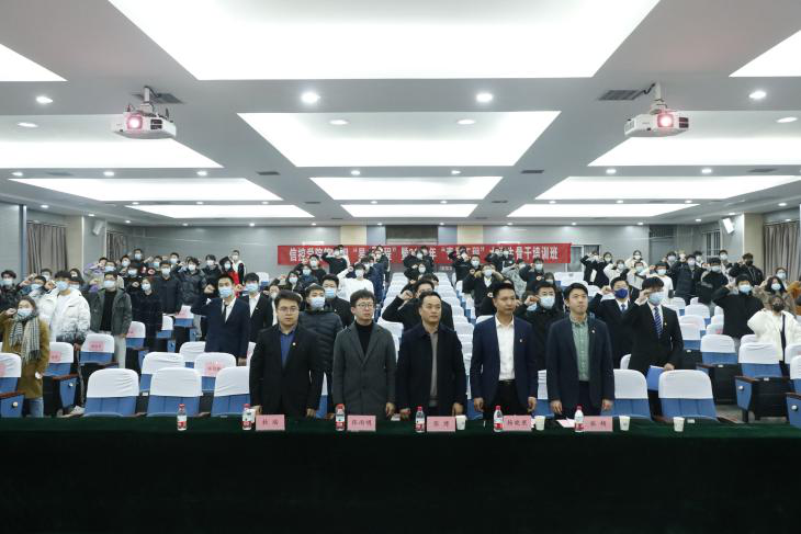 本期青马班班主任杨晓寒宣读《培训班内容安排、纪律要求》。学员代表赵子博代表第七期“星火工程”暨2021年“青马工程”大学生骨干培训班全体学员作表态发言,号召同学们要常修常炼,坚定理想信念,提高站位,严守培训纪律,实学实干,提升综合素质。学员代表杨剑桥带领全体学员宣誓。开班仪式在校歌《高举民族复兴的伟大旗帜》的合唱声中落下帷幕。