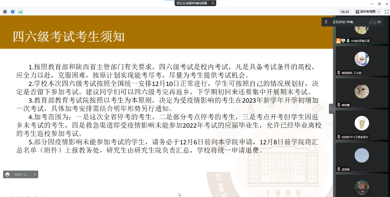 最后,激励大家有针对性地复习备考。分享了调整心态、缓解紧张情绪的小技巧,缓解了同学们即将应试的紧张情绪,帮助各位同学从容应考。