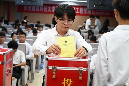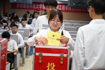 在总监票人刘祎晨的监督下,全体代表分别投票选举了新一届学生会委员会、学生会主席团、研究生会委员会、研究生会主席团、校双代会学院本科生代表和研究生代表。