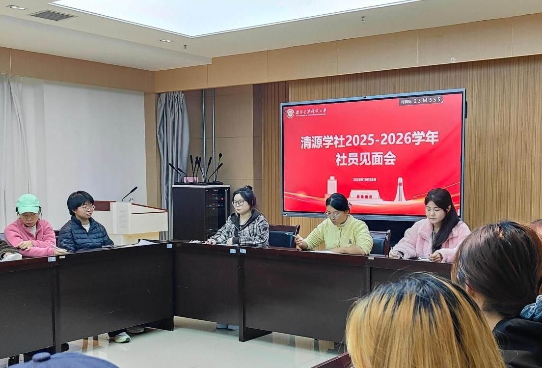 清源学社于信控楼504召开2025-2026学年新成员见面会,指导老师赵莎和新老社员参加此次见面会,会议由社团负责人李玟主持。