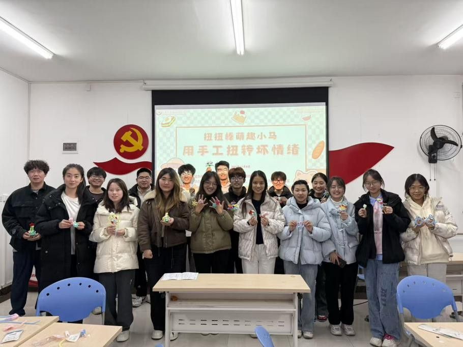 创作完成后,活动设置了成果展示与情绪分享环节,同学们依次上台展示成品,并讲述创作时的心情或作品背后的 “情绪故事”。在轻松的互动氛围中,大家收获了正向的情绪反馈,进一步完成了焦虑与压力的释放,真正卸下了期末备考的心理包袱,实现了从“情绪积压”到“情绪疏解”的转变。此次活动不仅为同学们留下了难忘的自愈体验,更让扭扭棒小马成为守护心理健康的“情绪骑士”,为后续应对焦虑情绪提供了具象化的心理慰藉载体。