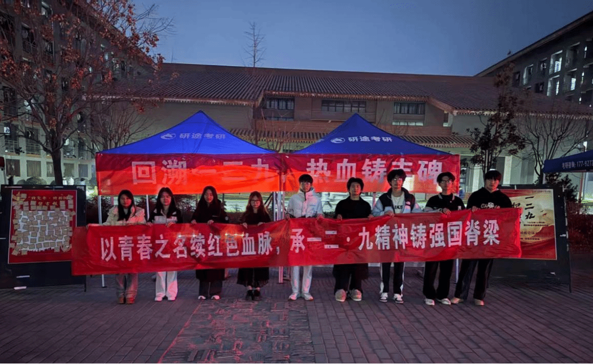 学生会、研究生会于12月9日举办了主题为“回溯一二九,热血铸丰碑”的纪念活动。活动旨在持续唤醒青年学生的爱国热忱,展现新时代青年的昂扬风貌,为中华民族伟大复兴的中国梦汇聚青春动能。