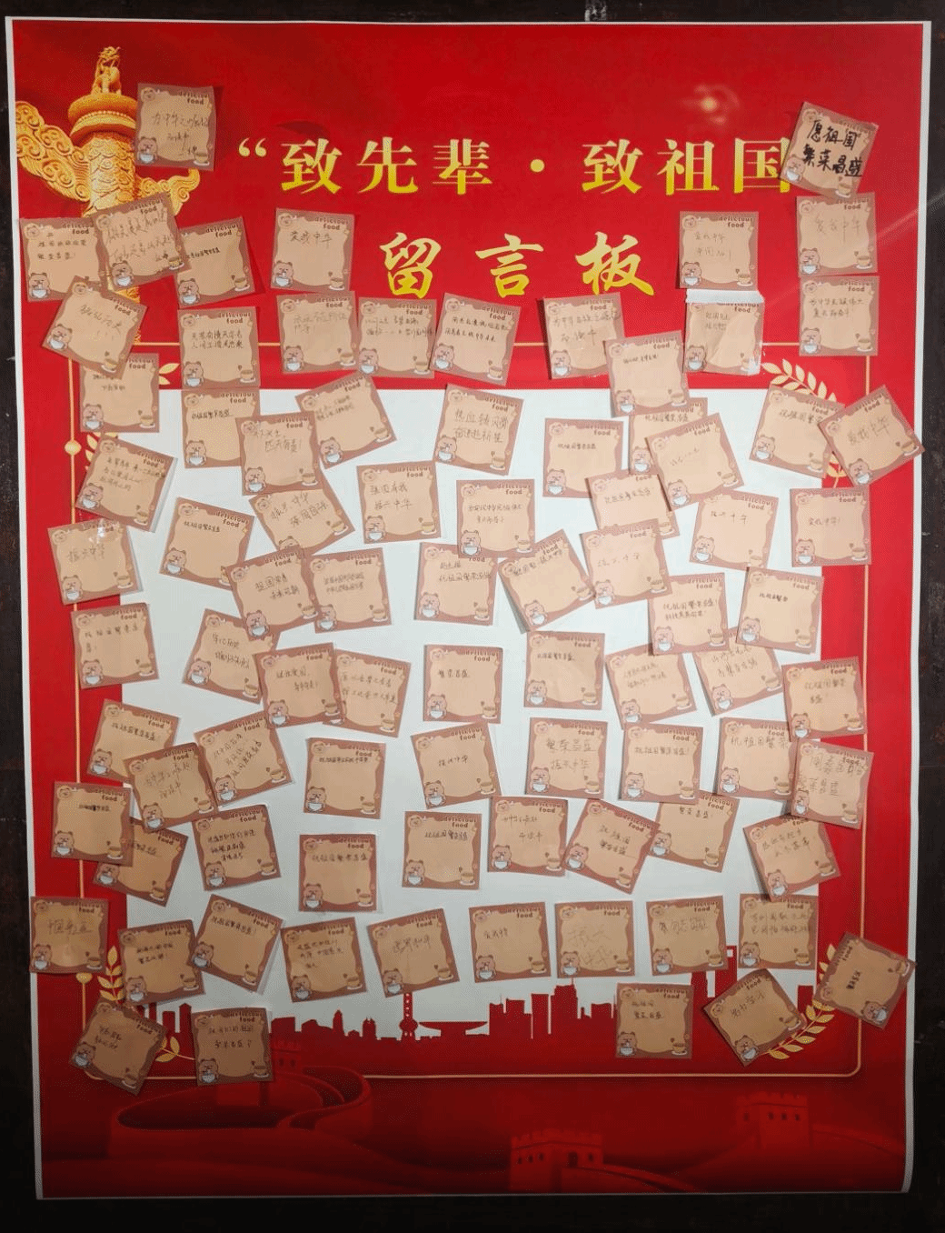 一张便签,一份深情,活动现场的留言板前格外热闹。同学们拿起笔,在便签上写下对祖国的真挚祝福,字里行间满是赤诚与期盼。一句句“山河无恙,国泰民安”、“强国有我,不负韶华”、“祝福祖国繁荣昌盛”,既是对历史的铭记,更是对未来的承诺。小小的便签汇聚成滚烫的家国情怀,让红色精神在笔墨间传递,让强国之志在心中扎根!