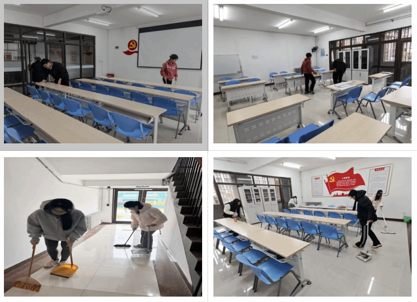活动现场,志愿者们精神饱满、干劲昂扬。大家手持扫帚、抹布、垃圾夹等工具,对“一站式”学生社区公共区域卫生死角开展集中清扫。志愿者们细致清扫地面杂物,认真擦拭桌凳及公共设施,全面清除各类污渍,实现环境整治无死角、无遗漏。