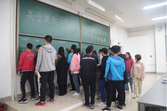 团学组织于学府城12栋201教室自发组织学习《公约》并郑重签字履行公约。酷爱成人网