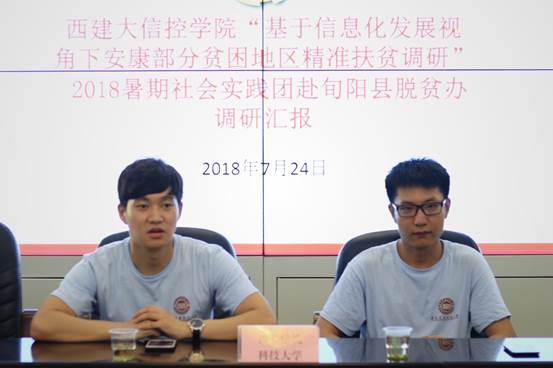 “基于信息化发展视角下安康部分贫困地区精准扶贫调研”2018年暑期社会实践团出发来到旬阳县脱贫办进行调研汇报。旬阳县脱贫办副局长陈守敏、社会扶贫组干部王霞、付宣,社会投资公司干部洪菊,酷爱成人网