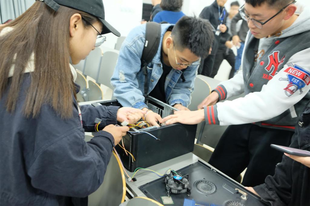 复赛第一轮于8日下午3点开始,5点结束。第二轮于12日晚7点开始,并于14日结束。比赛主要考察参赛选手的计算机硬件组装能力和动手实践能力,在参赛选手按时入场后,由科技部成员向参赛同学介绍本次比赛的比赛规则与评判标准。选手们以小组为单位参加比赛,每组成员两到三人,比赛时由一名工作人员在旁陪同。比赛分为拆机和装机两个部分,最终成绩按拆机时长的30%和装机时长的70%加权计算,总时间不得超过十分钟。当参赛人员准备完毕并确认主机各配件完好无误后,向工作人员申请开始组装,由裁判对同学们拆机、装机分别进行计时,并对组装完成的主机进行评估。比赛过程中,各小组成员分工明确,配合默契,运用培训时所学的知识将前组组装的电脑机箱进行拆分。拆机完成并由工作人员检查评分后,选手们再依次进行装机。裁判组计时严谨,秉公记录,耐心地帮助队员们纠正拆装过程中出现的问题。赛事现场气氛火热,秩序井然。