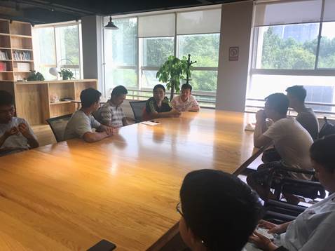 首先朱教授询问成员们在外出调研的一些情况,表扬大家的工作激情和工作效率。在实践团队长龙永富汇报了调研进度后,朱教授为后续工作制定了详细的方案。方案表示,实践团要在8月5日之前对所统计的所有数据入表,之后的阶段是数据的呈现和分析,朱教授按照实践团的自身情况,提出将整体分为四个组,分别分配到软件开发设计、高质量论文、调研报告三个工作中。尔后朱教授对这三个工作详细的进行了描述,包括数据进入数据库、如何写高质量论文等,并用投影仪推荐了适合的搜索引擎,举例展示了一些优秀的网站和论文。在朱教授大致分配完工作后,学生们就后期工作的些许问题向三位老师请教,老师们根据自己的经验为同学们提出解决方案。