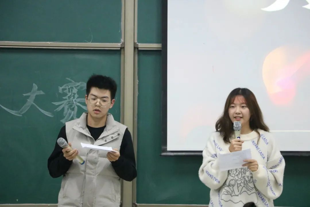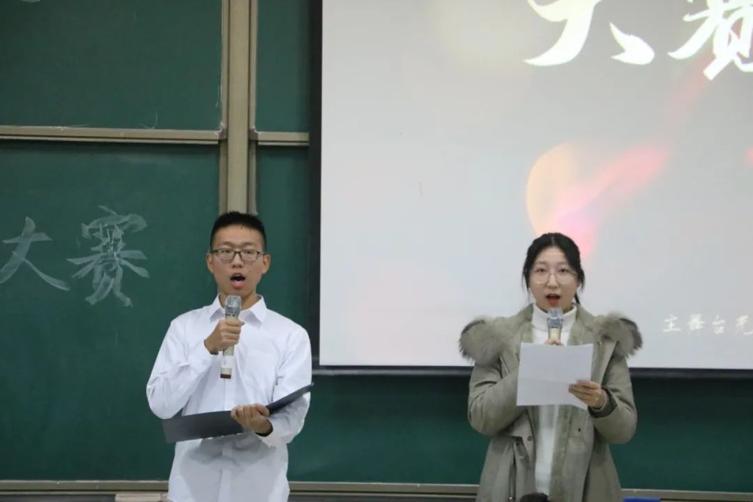 比赛中,选手们两两组队,模拟现场主持主题元旦晚会,各参赛选手敢于挑战自我,尽显风采,男生女生的主持词引导着现场的氛围,主持内容的深度更是引起一阵阵掌声。第一环节结束,评委们对选手们的展示表示赞扬,并对选手们的主持给出了由衷的建议,希望选手们将主持的热情带入生活中、学习上。