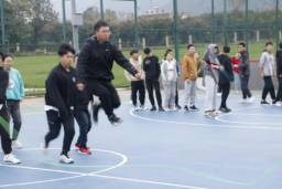 只见那跳绳被甩得上下翻飞,同学们脚底像按了两只弹簧,快速跳起落下,又跳起,又落下,轻盈的像只小鹿。