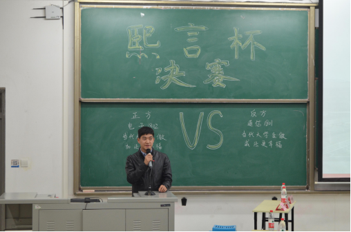 辩论队教练赵珣共同担任决赛评委。经过半个月的激烈角逐,最终,电子1802班和通信1801班杀出重围挺进决赛。