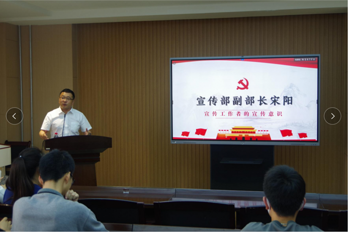 宋阳根据自身在学生工作中宣传的经验,结合当前在宣传部的工作要求,从近期学校宣传大事件启发同学们要在实践中培养宣传意识,增强宣传工作收获感和幸福感。并鼓励同学们积极将高质量作品提交至宣传部,一起做好校园文化建设,在学校发展中做好见证者和记录者。
