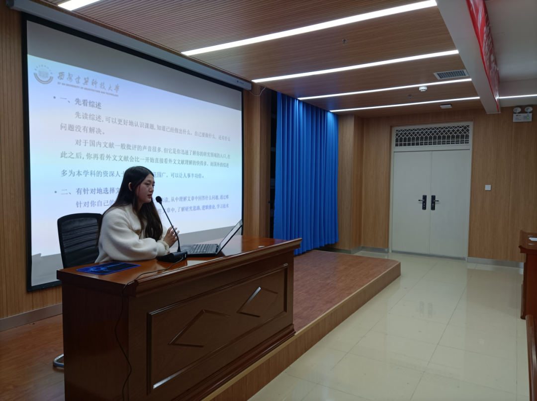首先,研2019级的刘恒同学结合自身经验从科研、竞赛成果等方面进行了介绍,并详细讲解了发表一篇SCI期刊论文所需的步骤,让大家对如何发表一篇优秀论文有了清楚的认知。她谈到读研的感悟时强调,研究生在做科研时要主动探索问题,要不怕困苦迎难而上,最重要的是“少抱怨、不要懒”。