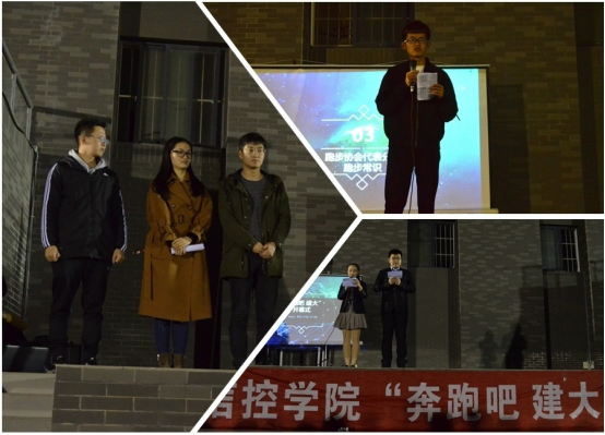 开幕式正式开始。首先由郝鑫上台致辞,她向大家详细地介绍了“奔跑吧,建大”系列活动的意义与目的,并为同学们揭晓了本次活动的奖品,激励同学们的参与积极性。她表示主办方已组织安排了后勤保障人员,从细节入手有力地支持和保证了活动的有序进行。接着郝鑫向大家介绍了活动的幕后工作人员——酷爱成人网