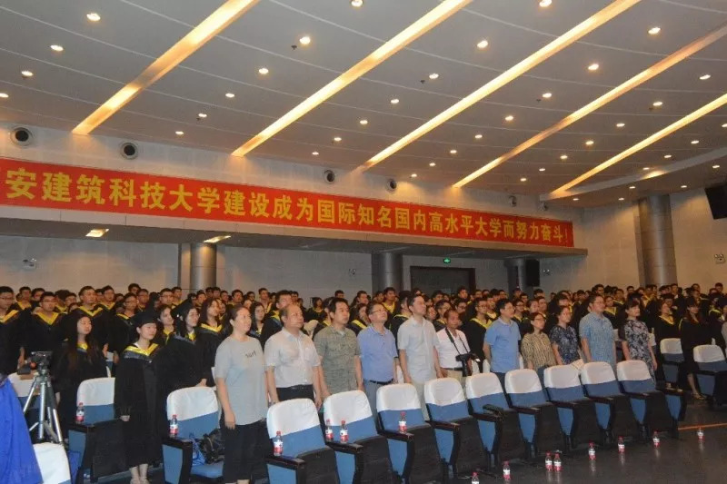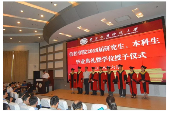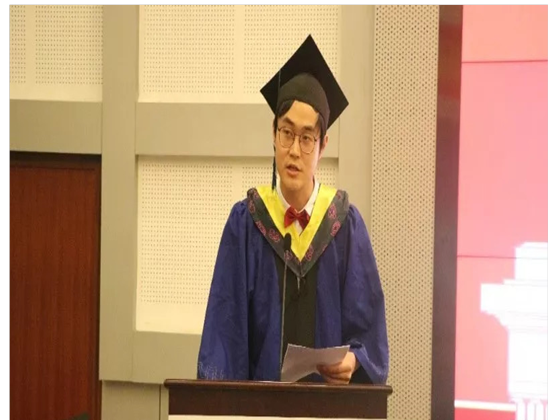 计算机教研室王超学教授作为研究生导师代表,提出“顶天立地”四个字与同学们共勉。他指出做研究要顶天立地,从实际发现问题,同时为人更要顶天立地,脚踏实地,常怀敬畏之心。智能建筑专业谭咏光同学作为研究生毕业代表,在发言中对三年来在思想、学术、生活各方面给予了我们莫大帮助的恩师表达了诚挚的感谢。