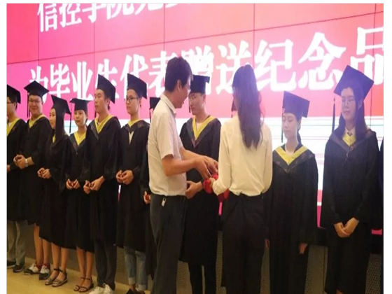 党委书记吴昊为受表彰的优秀研究生、本科生毕业代表赠送刻有校徽院徽的专属纪念印章。
