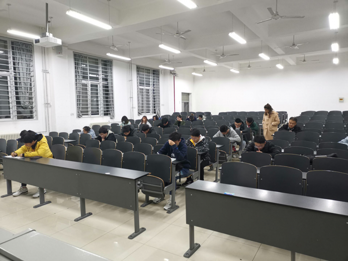 本次高数考试由专业年级前十名同学出题,由科创学习部组织监考,共有35人参加。考场上同学们遵守考试纪律,认真答题。期间,2020级辅导员赵莎老师前来巡考,考场秩序井然,考试顺利进行。