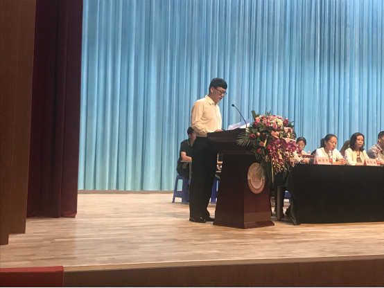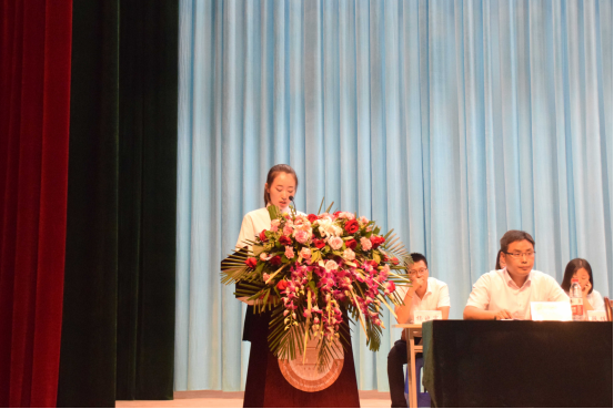 叶娜老师作为教师代表上台发言。她告诫同学们进入大学是新的机遇、新的挑战,作为新征程的开始。叶老师嘱咐同学们要调整心态,转变角色,做好合理的学业规划,更要牢记校风校训,自主自立,团结友爱,独自面对自己的学习与生活。