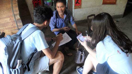 简单告别村委,实践队员们徒步前往村民家进行访问调研。在与农户的交谈中,队员们大致了解了村内扶贫政策的落实情况。村内农户们有着养老保险,并办有农村合作医疗,村内也设有医疗救助帮助农户们解决治病医疗问题,大多数村民都对现有的扶贫政策表示满意。