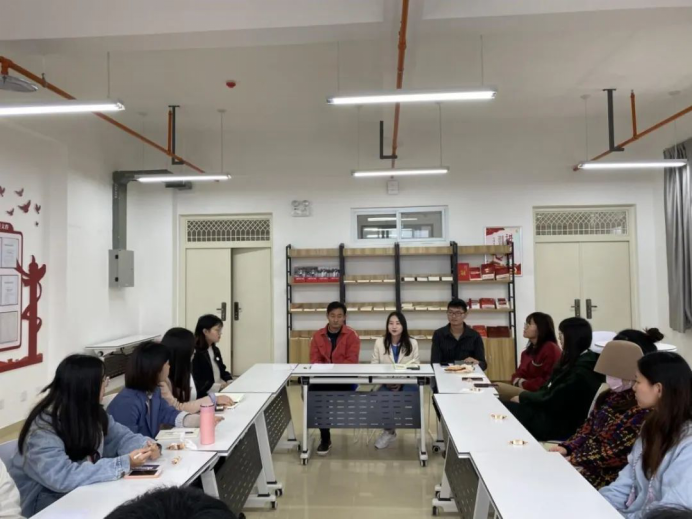 研会第一次学生干部交流会。此次会议主要以座谈会的形式展开,在候选学生干部的主持下,交流会拉开帷幕。首先由研会候选干部王嘉怡同学做简短讲话,对新加入研会的学生干部表示由衷的欢迎,并宣布交流正式开始。