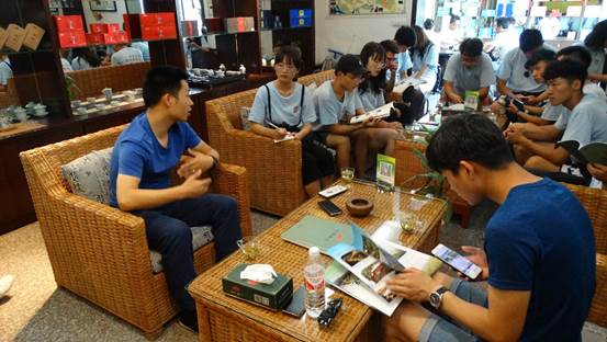 在与茶业副厂长曾鹏事先进行联系对接后,实践团一行按时到达公司。在会客室中,曾副厂长给队员们品尝了自己的茶品并首先为实践团详细介绍了厂内的相关信息以及公司的发展历程,同时着重讲到了公司帮扶贫困农户的系列措施。在交谈队员们得知,公司重点着重对象为和平村、双平村以及县城周边若干村的60余户贫困户。公司与他们签订“厂-村-民”三方协议,承诺以高价收购达公司质量标准的茶叶。同时,公司也会在年底对生产茶品质量高的农户予以价格补贴以及肥料补助。其次,公司也为一些贫困户提供长期的工作岗位,帮助他们解决就业问题。