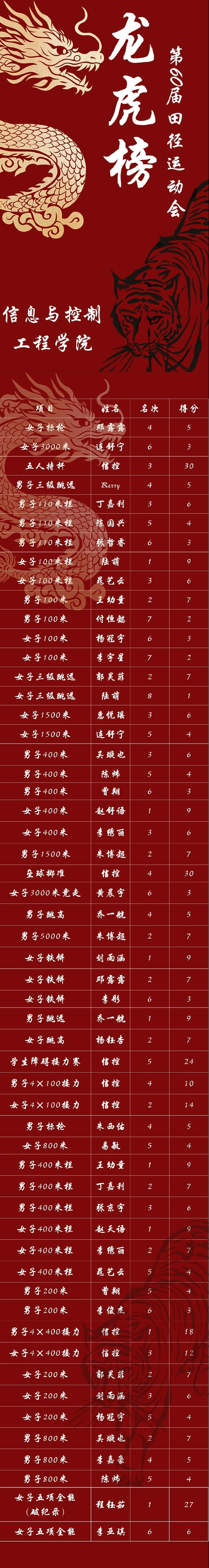 运动会龙虎榜(按项目比赛时间排序)